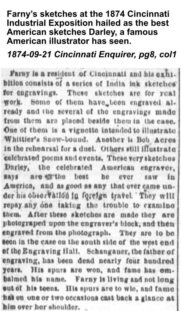 Indian Ink Sketches and Wood blocks: While juggling all the work related to Ye Giglampz, Farny found time to do a series so India ink sketches for engravings. The results receive accolades along with predictions that Farny had a promising career ahead of him.