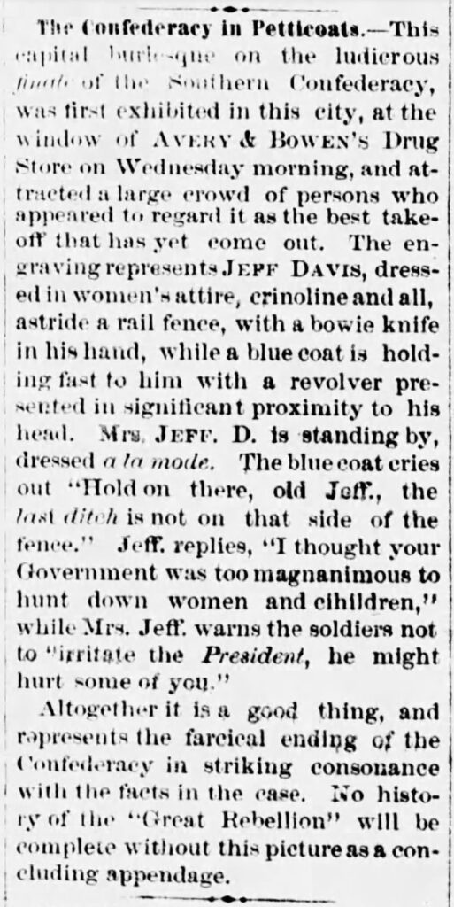 Here is an example of one article out of Richmond, Indiana, that described the “The Confederacy in Petticoats”.