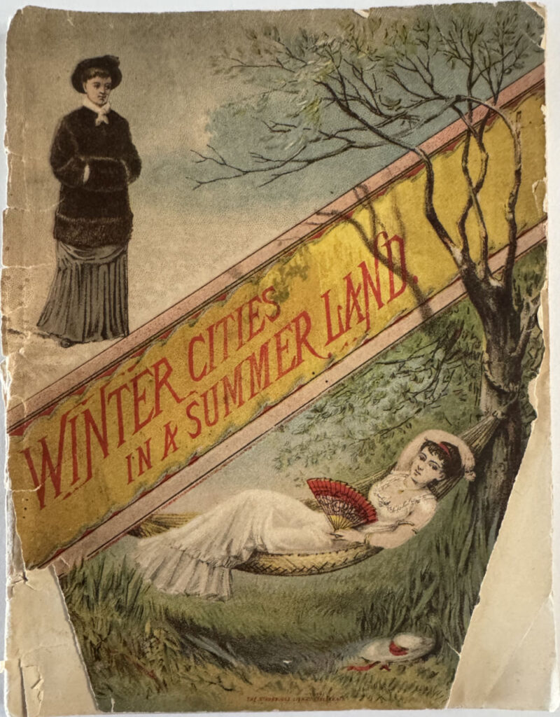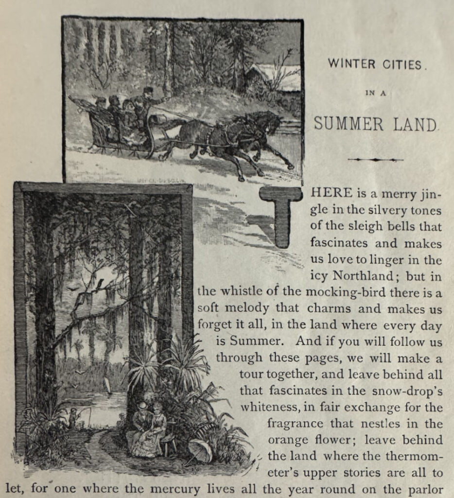 A November 07, 1881, article from The Cincinnati Enquirer informed readers that Farny had illustrated, “profusely”, illustrations for a free pamphlet from the Cincinnati, New Orleans, and Texas Railroad Company called Winter Cities in a Summer Land. The booklet edge just over one-hundred pages. Curiously, those much of the art has Farny’s detailed style, non of the works contain any of his signatures, though there are a few other works that do have signatures, including at least one illustration by Thomas Moran.