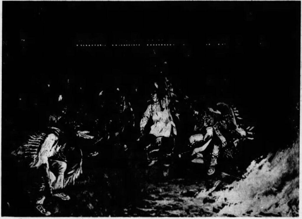 In 1947, the Cincinnati Enquirer published another article that included Indian Fire Dance. In the article, author Mary L Alexander explained that Mr. and Mrs. Williams owned 15 of Farny’s works. In describing the Indian Fire Dance, she said: