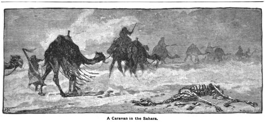 Page 75: A Caravan in the Sahara, 1883-Preface-The-Eclectic-Elementary-Geography-Farny-Illustration-A-Caravan-in-the-Sierra-pg75.jpg,https://babel.hathitrust.org/cgi/pt?id=hvd.32044097023451&seq=81,