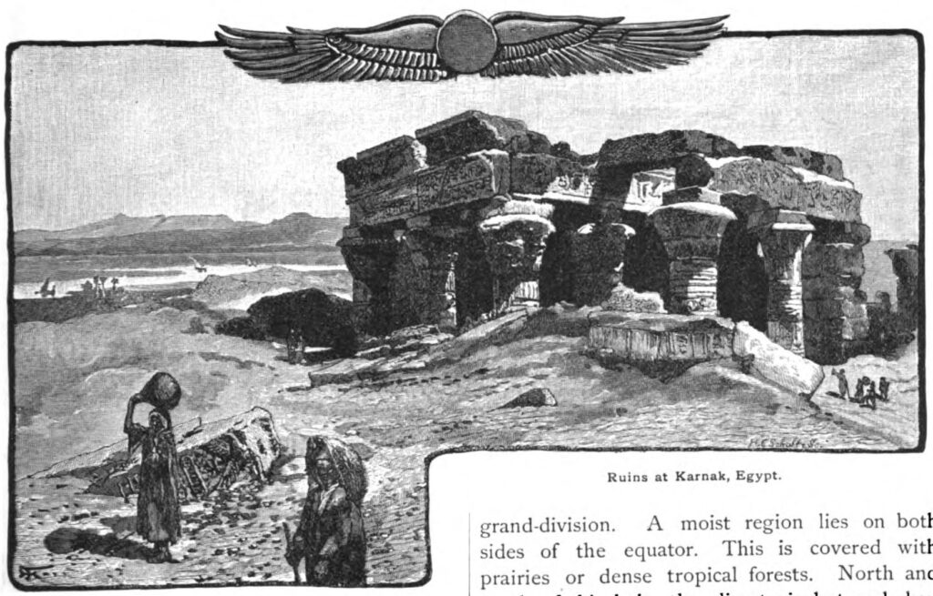 Page 73: Ruins at Karnak, Egypt, 1883-Preface-The-Eclectic-Elementary-Geography-Farny-Illustration-Ruins-at-Karnak-Egypt-pg73.jpg,https://babel.hathitrust.org/cgi/pt?id=hvd.32044097023451&seq=79