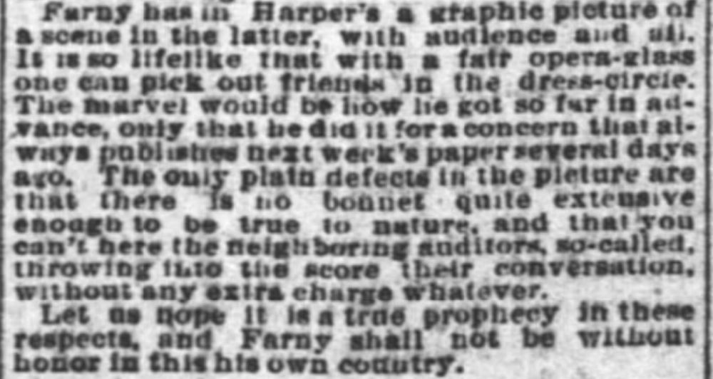 The February 03, 1883, issue of The Cincinnati Enquirer was effusive in their praise of his sketch: