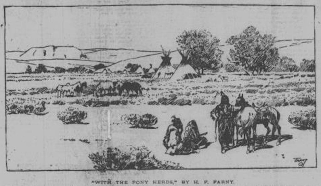 In 1893, Farny lent a painting called With the Pony Herds to 1893 Chicago World’s Fair. It appears that painting is now titled Indian Encampment. It was auctioned by Christies in 2009.