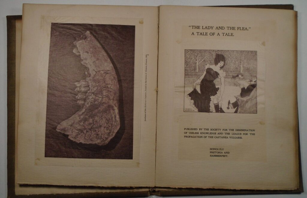 The most sublime Sunday school novel of modern times is ‘The Lady and the Flea,’ lately published by Harry Farny and Theodore Hallam. Hallam did the drawing and Farny librettoed it. It deals with human nature after dark, and has a very nice binding. The work should be in the hands of every young lady, and no policeman’s home is complete without it. Copies can be obtained from the Society for the Prevention of Christianity among Animals. Calf. C.O.D. $8.90 Half, calf, gratis. Flea Asa Bird & Co., Duluth, Minn.