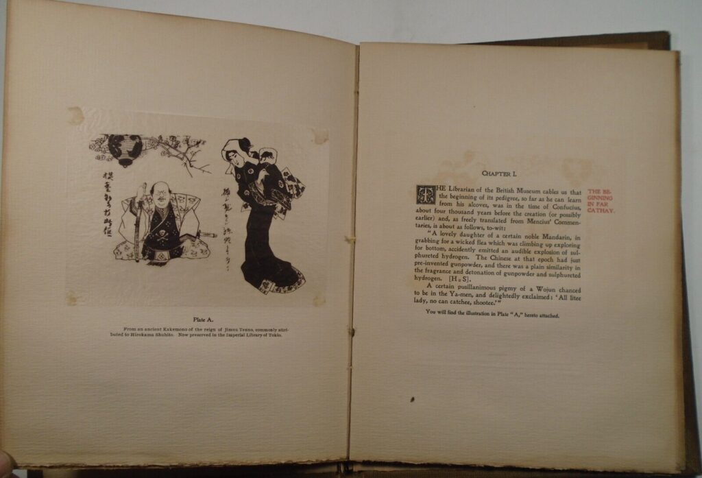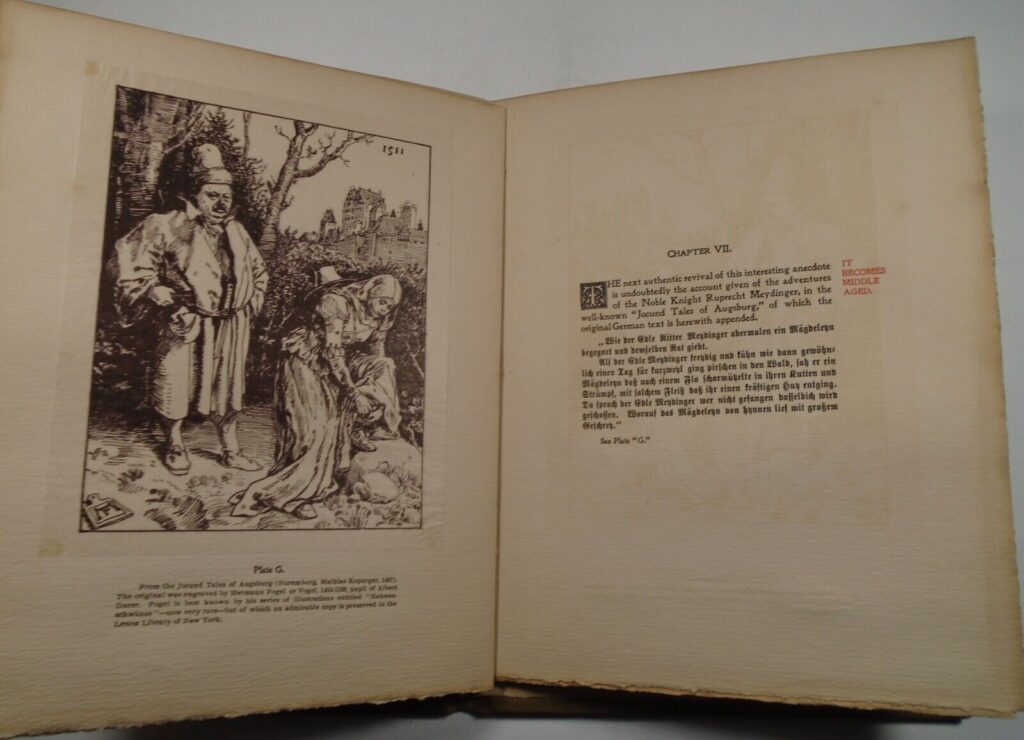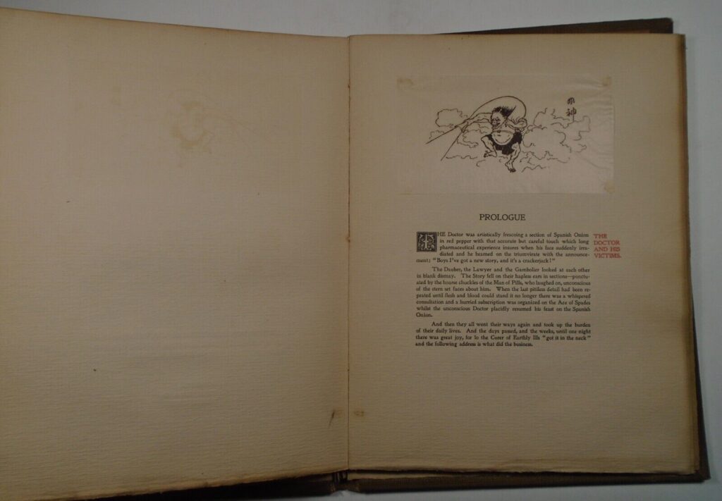 One day this group decided to make fun of Dr. Wise. According to a 1905 article, The jest cost exactly $250, 50 friends putting in $5 each for the copy of a book written by Hallam and Fowler and handsomely illustrated by Farny to trace the imaginary history of a story Dr. Wise had tried to tell each of them. They said the joke was a “chestnut” and in the book illustrations show ancient Egyptian, Roman, Greek and other types of art down through the mediaeval period to early American woodcuts, Indian bark sketches and up to the modern day drawings. In each of these is Dr. Wise depicted as telling the story.