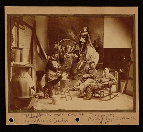 A picture from 1875, readily available on the internet (though there it’s often attributed to 1874), shows Farny, Frank Duveneck, and Frank Dengler in Duveneck’s studio with the painting “Prayer…
