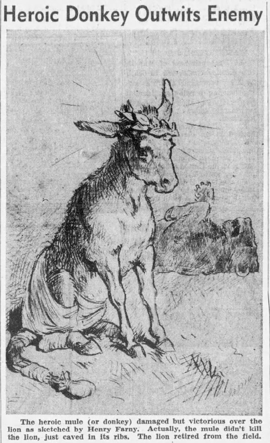 On March 25, 1875, Henry Farny sketched “The Hero of the Hour”, a drawing that immortalizes the death of a lion at the “hands” of the hero, a mule. According…