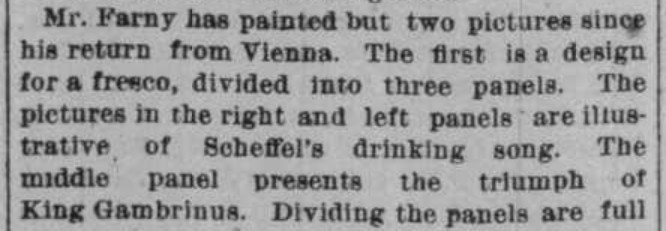 After returning from Vienna in 1873, among the works that Farny completed over the ensuing months included a three-panel Fresco, with the pictures right and left illustrative of Scheffel’s drinking…