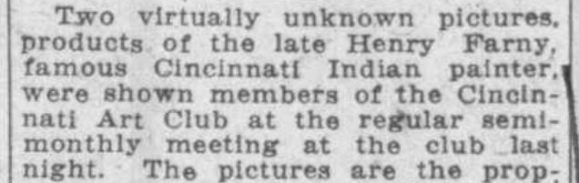For the 1872 Cincinnati Industrial Exposition, Farny entered three artworks. In the Oil Painting class Farny exhibited “Solitude” (entry #67) and in the Watercolors/Drawing Class farny shared two pen drawings:…